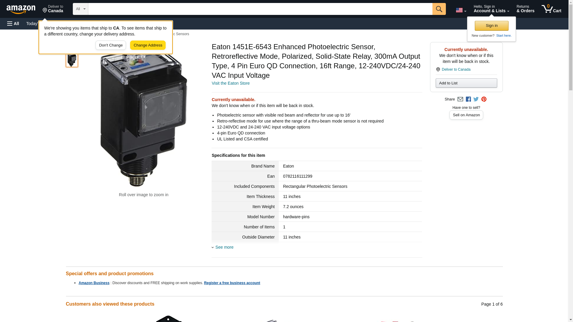 Eaton 1451E-6543 Enhanced Photoelectric Sensor, Retroreflective Mode, Polarized, Solid-State Relay, 300mA Output Type, 4 Pin Euro QD Connection, 16ft Range, 12-240VDC/24-240 VAC Input Voltage
