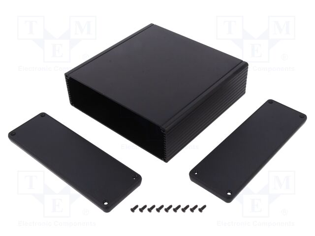 ENCLOSURE, PCB, ALUMINIUM, BLACK; Enclosure Type:Small; Enclosure Material:Extruded Aluminium; External Height - Metric:51.6mm; External Width - Metric:165mm; External Depth - Metric:160mm; IP Rating:IP54; Body Color:Black RoHS Compliant: Yes
