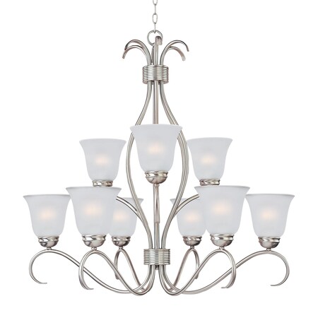 Maxim Lighting-10128FTSN-Collection: Basix, Material: Glass, Finish Color: Satin Nickel, Width: 32", Height: 32.75", Length: 32", Chain Length: 72", Lamping Type: Incandescent, Number Of Bulbs: 9, Wattage: 60 Watts, Dimmable: Yes, Moisture Rating: Dry Rated, Desc: Contemporary collection with sweeping arms and clean lines. Offered in Ice glass and Satin Nickel finish or Wilshire glass and Oil Rubbed Bronze finish. Canopy Included: Yes / Canopy Diameter: 5.00 / Chain Length: 72.00 / Dimable: Yes / Shade Included: Yes. ,-Basix-9 Light 2-Tier Chandelier in Contemporary style-32 Inches wide by 32.75 inches high -Traditional Installation