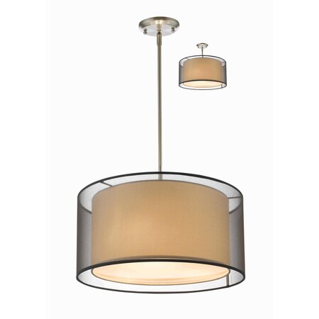 This 3 light Pendant from the Sedona collection by Z-Lite will enhance your home with a perfect mix of form and function. The features include a Brushed Nickel finish applied by experts. Product Features Include: Brand: Z-Lite, Collection: Sedona, SKU: 192-18BK-C, UPC: 685659046205, Category: Pendant, Finish: Brushed Nickel, Shade: Black Outside White Inside Organza, Material: Steel, Width: 18.00 in., Height: 57.48 in., Backplate/Canopy Width: 0.00 in., Backplate/Canopy Length: 0.00 in., Weight: 5.01 lb., Included Chain/Rods/Cord: 3x12" + 1X6" + 1x3" Rods, Included Lead Wire: 110.00, Bulbs Included: No, Primary Bulb(s): 3 x 100.00 watts Medium Medium, Safety Rating: CUL/cETLu Dry