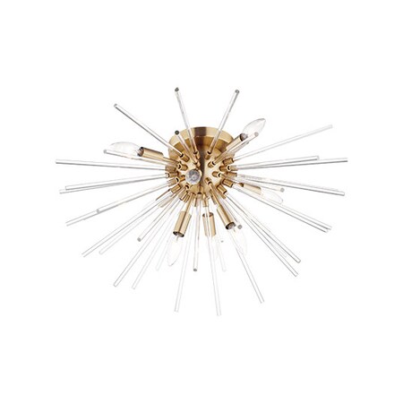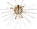 By Maxim, this modern Sputnik ceiling light captures attention with eight candelabra lights tucked within a sphere of glass rods that glimmer in the light. Perfect for your dining room or entryway, it's a flushmount design that works well in virtually any room. A satin brass finish over steel construction is a warm and welcoming final touch.