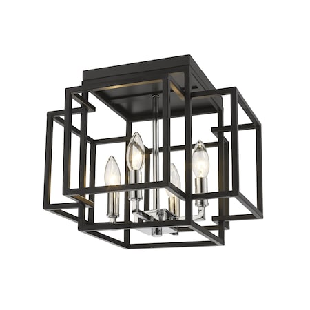 Z-Lite 454F-BK-CH 4 Light Flush Mount, Black + Chrome