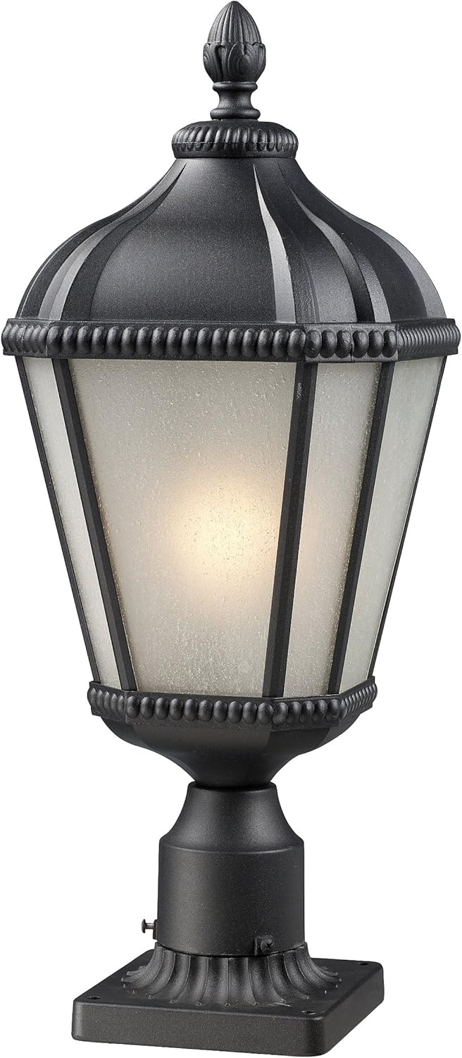 Z-Lite 513PHS-BK-PM Waverly Outdoor Post Light, Aluminum Frame, Black Finish and White Seedy Shade of Glass Material