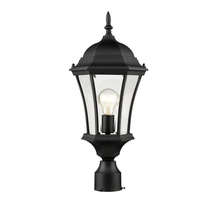 Z-Lite 522PHM-BK Wakefield Outdoor Post Light with Aluminum Frame, Black Finish and Clear Beveled Shade of Glass Material