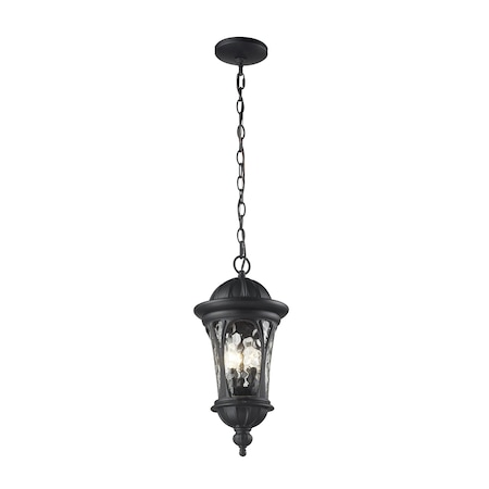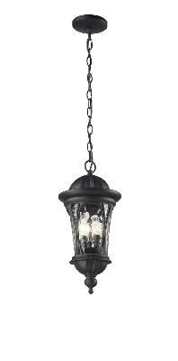 - Traditional and timeless, this medium outdoor chain hung combines black cast aluminum hardware with clear water glass for a classic look