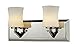 | Feature | This two light vanity uses exquisitely designed, angled chrome arms to hold uniquely shaped, warm glowing matte opal shades |