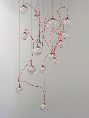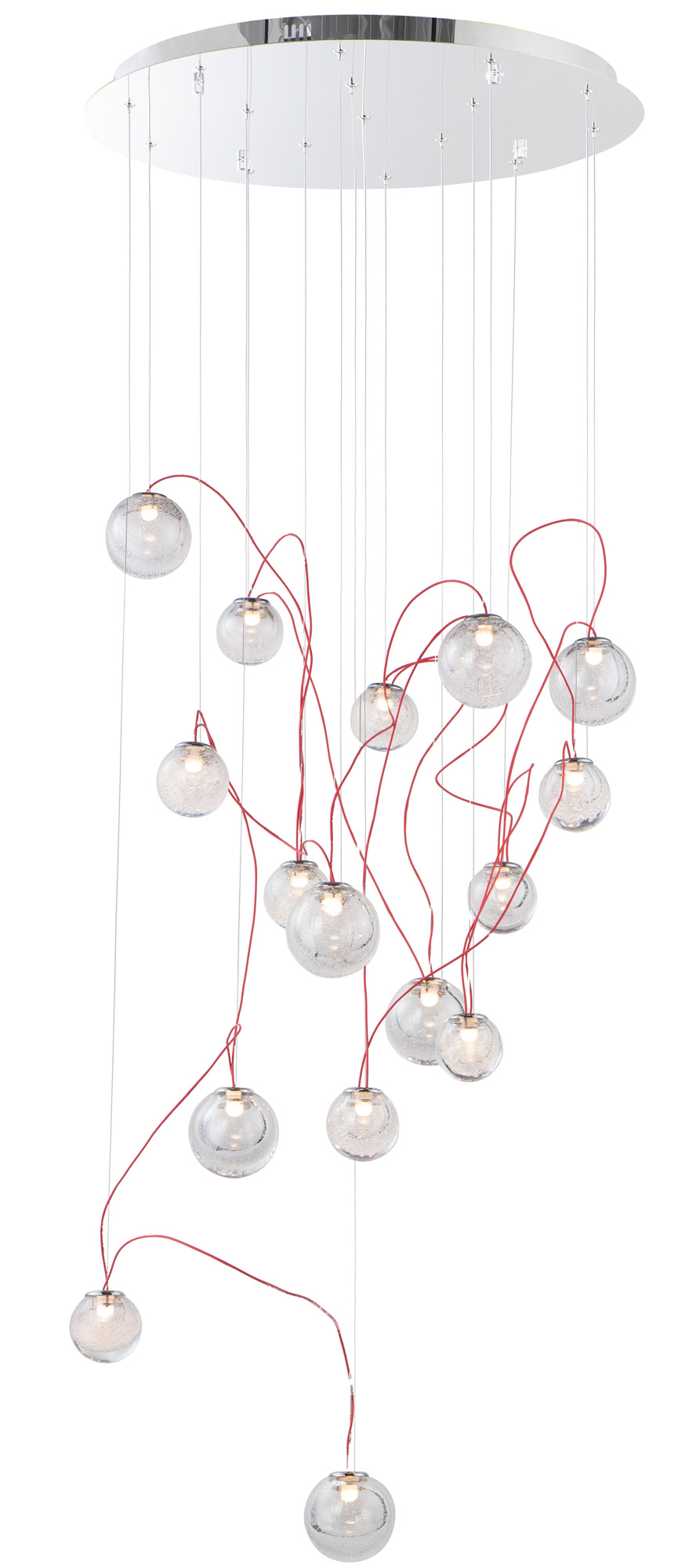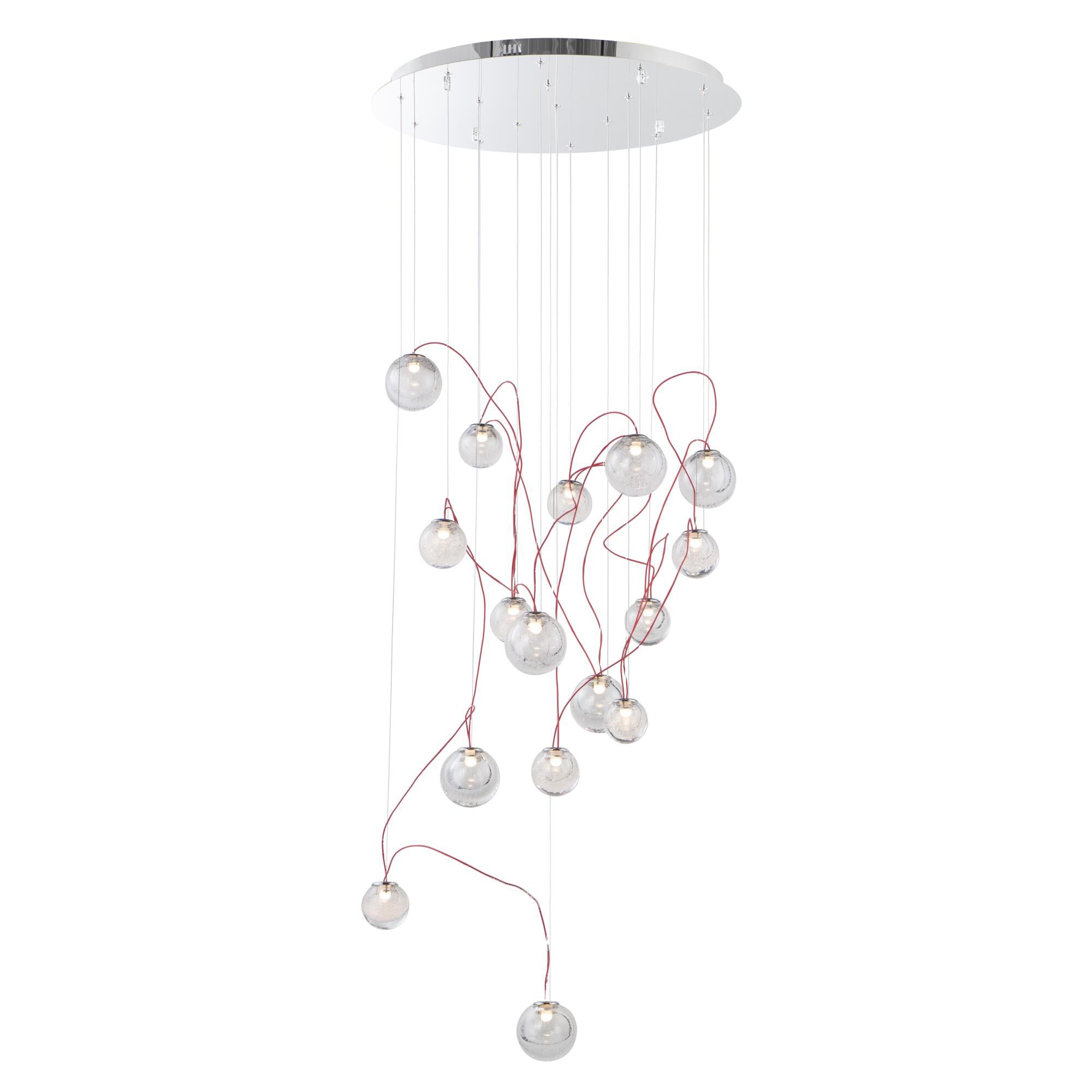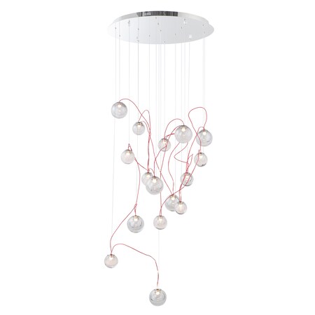 ET2 E20656-91PC Bobble Galaxy-Like Floating Red Corded Heavy Bubble Glass Spheres LED Pendant, 16-Light 24 Total Watts, 49" H x 24" W, Polished Chrome