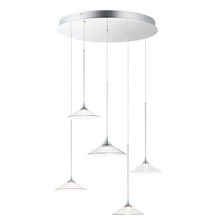 This 5 light Multi-Light Pendant from the Cono collection by ET2 will enhance your home with a perfect mix of form and function. The features include a Polished Chrome finish applied by experts. Product Features Include: Brand: ET2, Collection: Cono, SKU: E21536-24PC, UPC: 845094094319, Category: Pendant, Finish: Polished Chrome, Glass: Clear, Shade: Glass, Material: Aluminum/Steel/Acrylic/Glass, Length: 26.00 in., Width: 26.00 in., Height: 24.75 in., Max Height: 146.00 in., Backplate/Canopy Width: 1.50 in., Backplate/Canopy Length: 20.75 in., Backplate/Canopy Thickness: 20.75 in., Included Lead Wire: 120.00, Bulbs Included: Yes, Bulb Category: LED, Primary Bulb(s): 4 x 5.00 watts PCB Integrated, Secondary Bulb(s): 1 x 15 watts LED, Color Temperature: 3000K, Color Rendering Index: 80.0000, Total Lumens: 2560, Voltage: 120, Safety Rating: cETLus Dry
