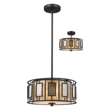 Lankin 3 Light Pendant, Bronze & Silver Mercury Outside with White Mica Inside