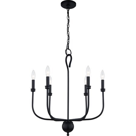 Though you can choose from a clear hammered glass shade, beige fabric shade, classic chandelier, or an airy, open-frame pendant, Blanche features a unifying style via its simple lines and traditional matte black finish. The different shapes, from flush mount to chandelier, also work well together throughout a variety of spaces. Six Light Chandelier Collection: Blanche Finish: Matte Black Width: 22.00`` Height: 26.00`` Length: 22.00`` Safety Listing: ETL Bulbs: 6 X B10 60.00W