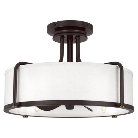 Nestled within the Calvary semi-flush mount's white fabric shade is a vintage-inspired fan, casting both a soft glow and cool, refreshing air via a three-speed, reversible motor. Crafted from steel in a handsome western bronze finish, this piece is supremely functional without sacrificing form: Calvary offers classic style in spades.