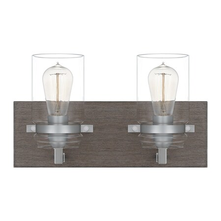 From its rich wood grains to its clear glass shade, this two-light metal wall sconce exudes sophistication. The jelly jar-inspired shades add a country-inspired vibe to beautifully complement farmhouse style decor. The fixture can be paired with dimmable bulbs for customized ambiance. A classically stylish creation from Quoizel's Craven collection.