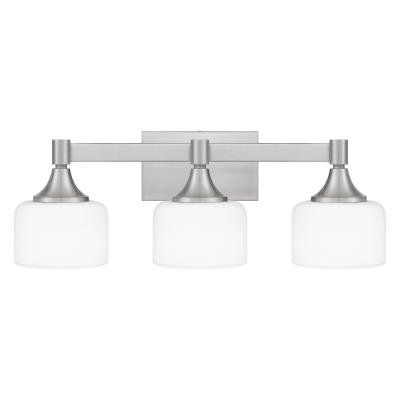 - Brushed nickel finish over steel construction. Opal etched glass shades.