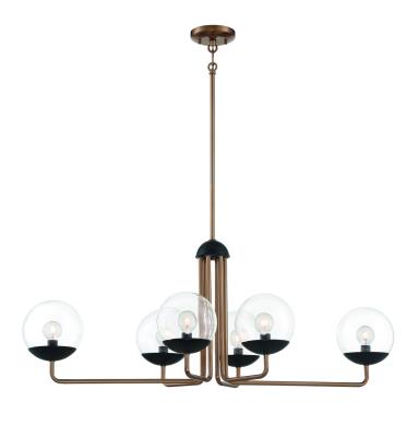 Round, clear glass in the orbs invites an open look to the six-light kitchen island light chandelier from the George Kovacs brand. The chandelier will rejuvenate your modern kitchen with its minimalist feel. The painted bronze with natural brush finish pairs nicely with its steel and glass construction. It is suitable for damp locations, as well as sloped ceilings.