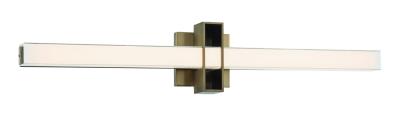 Brighten your bathroom or power room with this elegant modern LED vanity light from George Kovacs. It comes in a rectangular glass shade attached to an aged brass finish steel frame, in a sleek silhouette that boasts clean, straight lines. This design is perfect for update contemporary and glam luxe style settings.