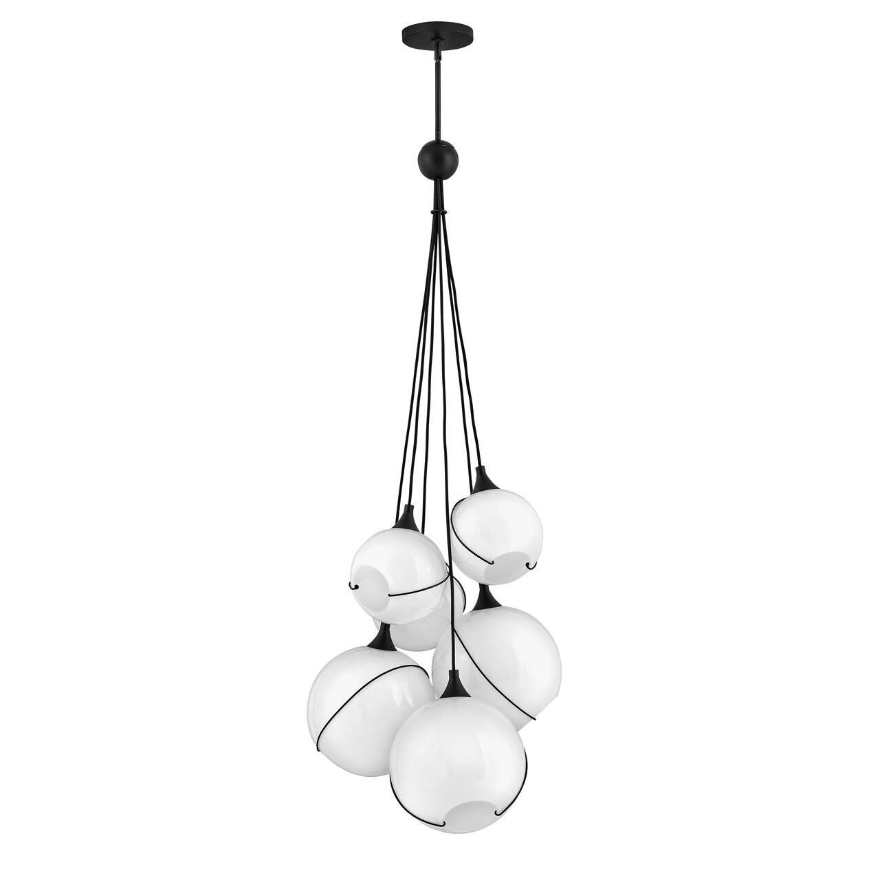 Mesmerizingly asymmetrical with a mid-century modern flair, Skye showcases a single or cluster of glass globes, each encircled with a slender ring. Each opening is off-center and the globes fall to different lengths, with Heritage Brass or Black details pulling the look together perfectly. Skye is part of the Lisa McDennon Collection.