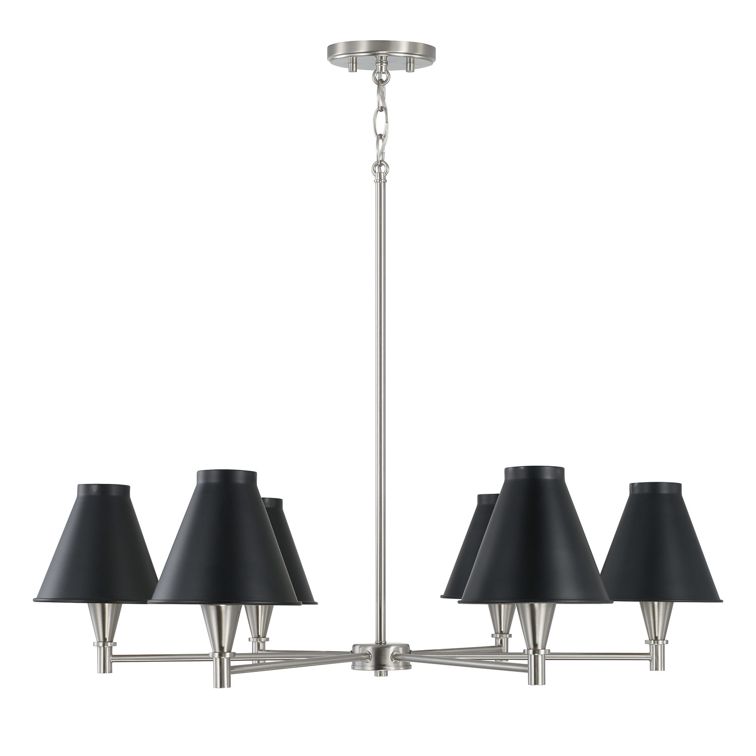 Capital Lighting 441561BT-699 Benson Modern Black Metal Shade with Brushed Nickel Interior Chandelier, 6-Light 360 Total Watts, 9" H x 32" W, Black Tie