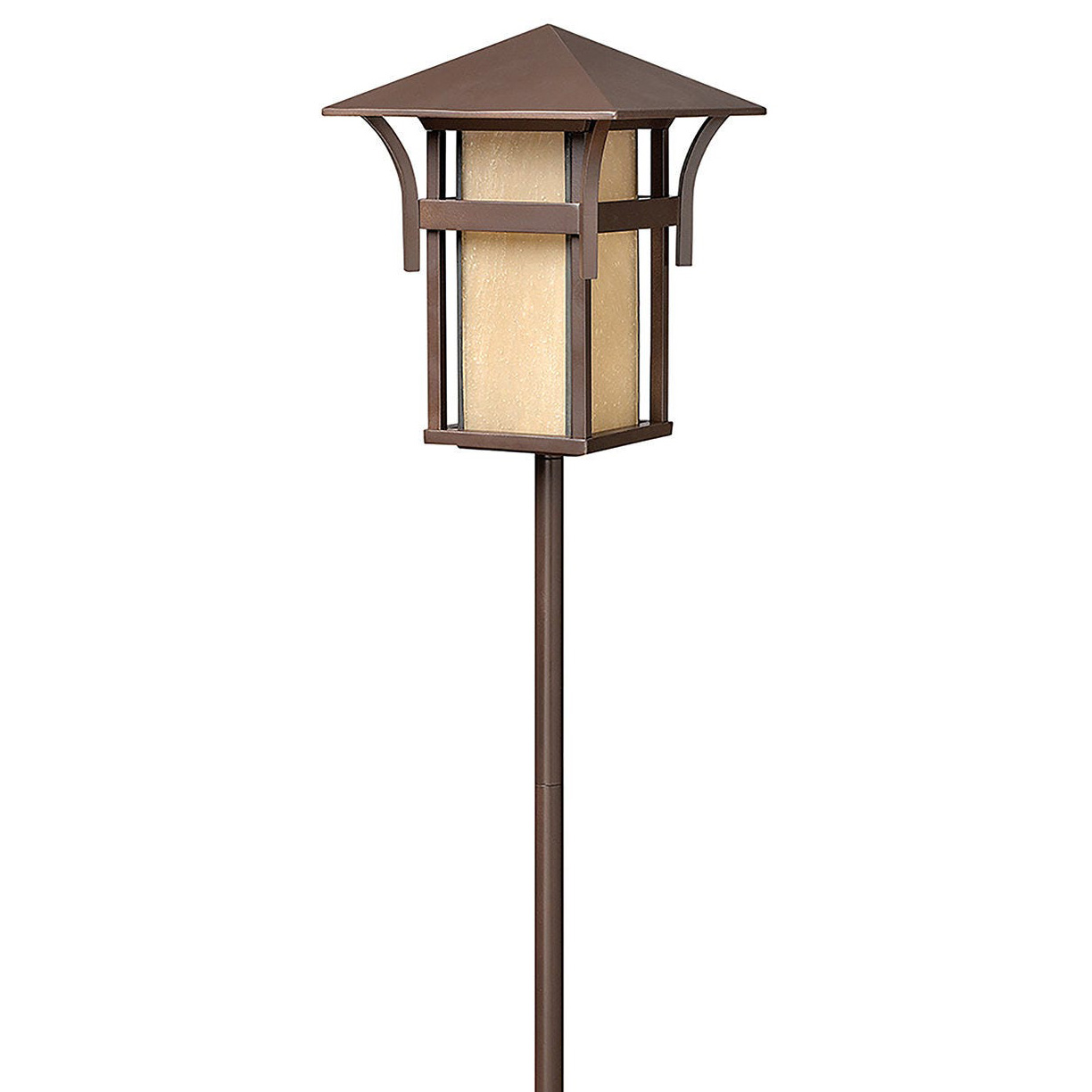 Finish: Anchor Bronze Width: 7" Height: 24" Glass: Etched Amber Seedy Bound Material: Aluminum Transformer Required: Yes Brand: Hinkley Finish: Anchor Bronze Width: 7" Height: 24" Glass: Etched Amber Seedy Bound Light Source: Socketed LED Name: 00T5-27LED-2.5 Voltage: 12v Volt-Amps: 4.6 LED Color Temp: 2700 LED Lumens: 250 Features A wiring kit and ground spike are supplied Suitable for use in wet (outdoor direct rain) locations as defined by NEC and CEC. Meets United States UL Underwriters Laboratories & CSA Canadian Standards Association Product Safety Standards For more information on how to control your landscape lighting via the Hinkley Home Automation App, click here. Our Estate Collections boast a breadth of fixtures defined by coordinating composition, enduring architecture, and time-honored craftsmanship, designed to meet the needs of expansive properties with extended outdoor living spaces. From the entrance of your driveway to the depths of your backyard, these collections provide cohesive design for stately exteriors. LED Bulbs carry a 3-year limited warranty Streamlined forms, robust finishes and symmetrical details complement Craftsman facades Depth: 7 LED CRI: 90 Incandescent Equivalency: 1 x 25w LED Lifespan: 25,000 hrs Dimmable: Yes, with MLV on Transformer Primary Leadwire: 1 X 36" Weight: 3lb UPC Code: 640665156546 WARNING for California Customers