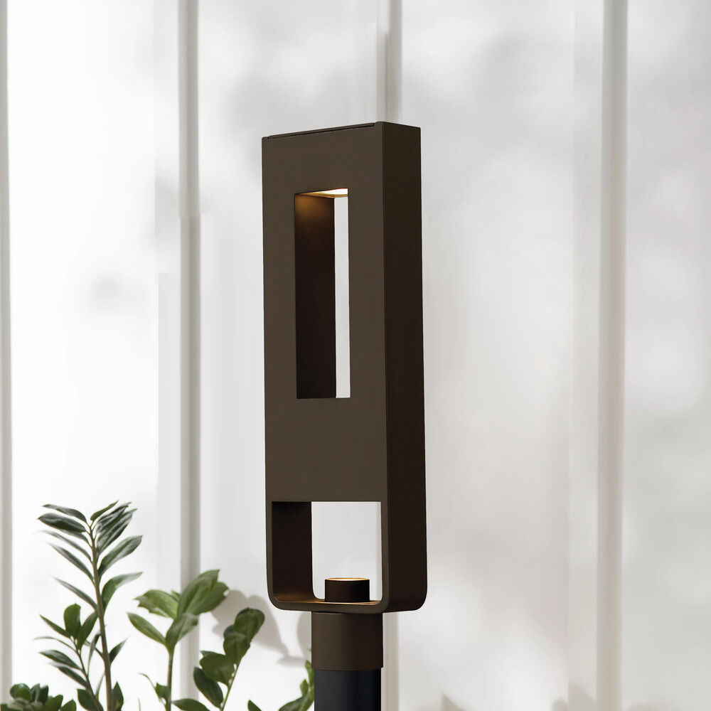 Atlantis features a minimalist design for the ultimate in urban sophistication. Constructed of solid aluminum and Dark Sky compliant, Atlantis provides a chic solution to eco-conscious homeowners, equipped with a universal driver in both the integrated LED and LED bulb base making this suitable for 120V and 277V applications. Finish: Bronze Width: 6.75" Height: 24.5" Glass: Etched Lens Material: Aluminum Brand: Hinkley Finish: Bronze Width: 6.75" Height: 24.5" Glass: Etched Lens Light Source: Socketed LED Name: 6W3K35 Voltage: 120v Volt-Amps: 13.3 LED Color Temp: 3000 LED Lumens: 880 Features Suitable for use in wet (outdoor direct rain) locations as defined by NEC and CEC. Meets United States UL Underwriters Laboratories & CSA Canadian Standards Association Product Safety Standards Fixture is Dark Sky compliant and engineered to minimize light glare upward into the night sky Meets California Energy Commission Title regulations/JA8 when using the included LED bulb 2-year finish warranty LED Bulbs carry a 3-year limited warranty Bold lines and a clean, minimalist style complement contemporary architecture Depth: 3 LED CRI: 90 Incandescent Equivalency: 2 x 35w LED Lifespan: 25,000 hrs Dimmable: Yes, with MLV on Transformer Primary Fitter: 3 Weight: 4lb UPC Code: 640665165975 WARNING for California Customers