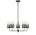 Pairing the industrial ruggedness of metal with the soft organic look of rattan, the Granada Collection features a textured Gunsmoke with Gray Rattan finish, clear seeded glass shades, and natural rope accents that add depth to the design. Measuring 25" wide x 10" high, this five-light convertible chandelier provides ample illumination from five 60-watt candelabra bulbs. Adding to the versatility is the adjustable hanging height from 10 to 64 inches.