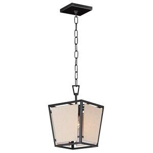 A dark frame of Bronze suspends panels of textured Oatmeal fabric. Bring in casual comfort with the Montauk collection, a design that easily transitions from more rustic applications to Mediterranean coastal styling. <UL>Warranty: 1 Year<LI>Canopy Included: Yes / Shade Included: Yes / Canopy Diameter: 5 x 5 x 0.75 / Dimable: Yes.