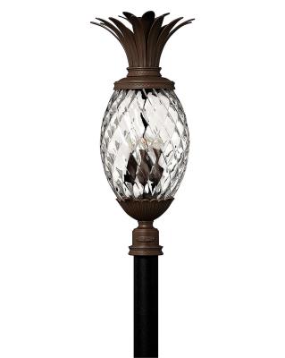 A Hinkley classic, the ornate Plantation collection features exceptional pineapple shaped, clear optic glass that makes a noble statement with matching candle sleeves and elaborate, decorative cast detailing.