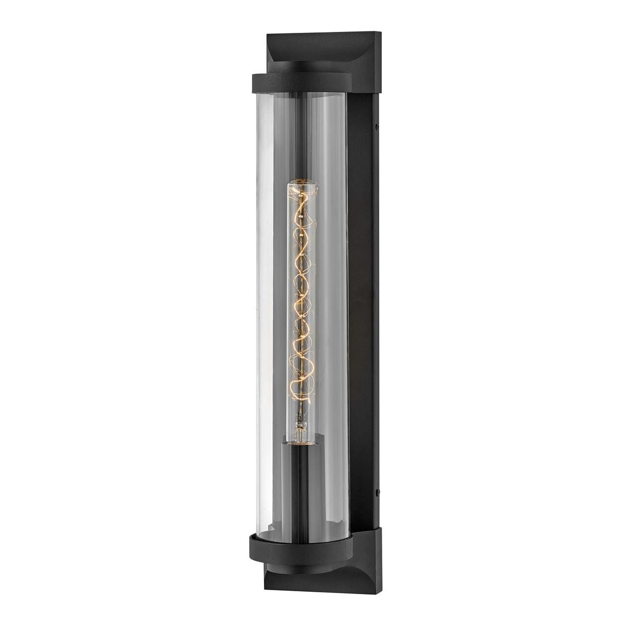 Take the indoor style of statement sconces outside. Drawing inspiration from the bygone era, Pearson emanates a feeling of nostalgia right outside your door. Featuring cast symmetrical end caps and clear cylindrical glass, Pearson combines the vintage look with a sleek backplate for the most sophisticated illumination in your outdoor living area. Available in a Burnished Bronze or Textured Black finish. Finish: Textured Black Width: 4.5" Height: 22" Glass: Clear Material: Aluminum Brand: Hinkley Finish: Textured Black Width: 4.5" Height: 22" Glass: Clear Light Source: Socketed LED Name: E26T10LED5W27 Voltage: 120v LED Color Temp: 2700 LED Lumens: 450 Features Mounting hardware is hidden on the back plate to ensure a clean silhouette Suitable for use in wet (outdoor direct rain) locations as defined by NEC and CEC. Meets United States UL Underwriters Laboratories & CSA Canadian Standards Association Product Safety Standards Meets California Energy Commission Title regulations/JA8 when using the included LED bulb 2-year finish warranty LED Bulbs carry a 3-year limited warranty Classic lines and heritage details complement traditional architecture LED CRI: 90 Incandescent Equivalency: 1 x 40w LED Lifespan: 15,000 hrs Dimmable: Yes - CL Type Dimmer (SSL7A) Back Plate: 4.5"W X 22"H Extension: 4.75” Top To Outlet: 11" Weight: 4.5lb UPC Code: 640665290677 WARNING for California Customers