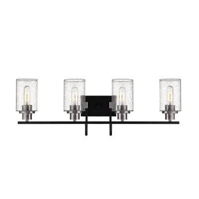 100W 4-Light Vanity Fixture in Matte Black with Brushed Nickel