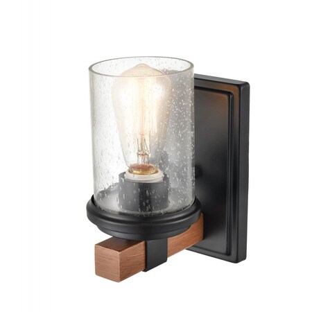 Millennium 3801-MB/WG Transitional One Light Wall Sconce from Taos Collection Finish, Matte Black/Wood Grain