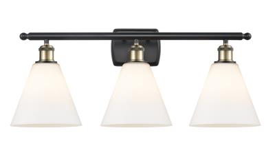 INNOVATIONS LIGHTING 516-3W-BAB-GBC-81-LED BALLSTON CONE BALLSTON 28 INCH 3 LIGHT WALL MOUNT BATH VANITY LIGHT, BLACK...