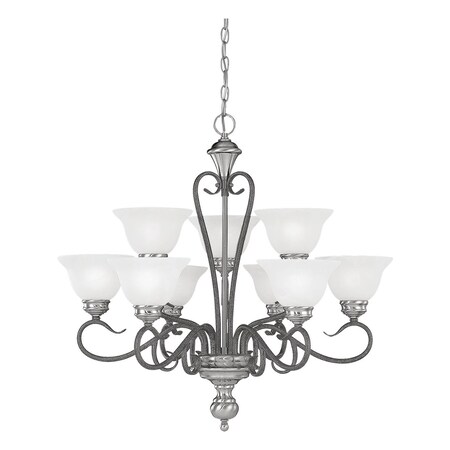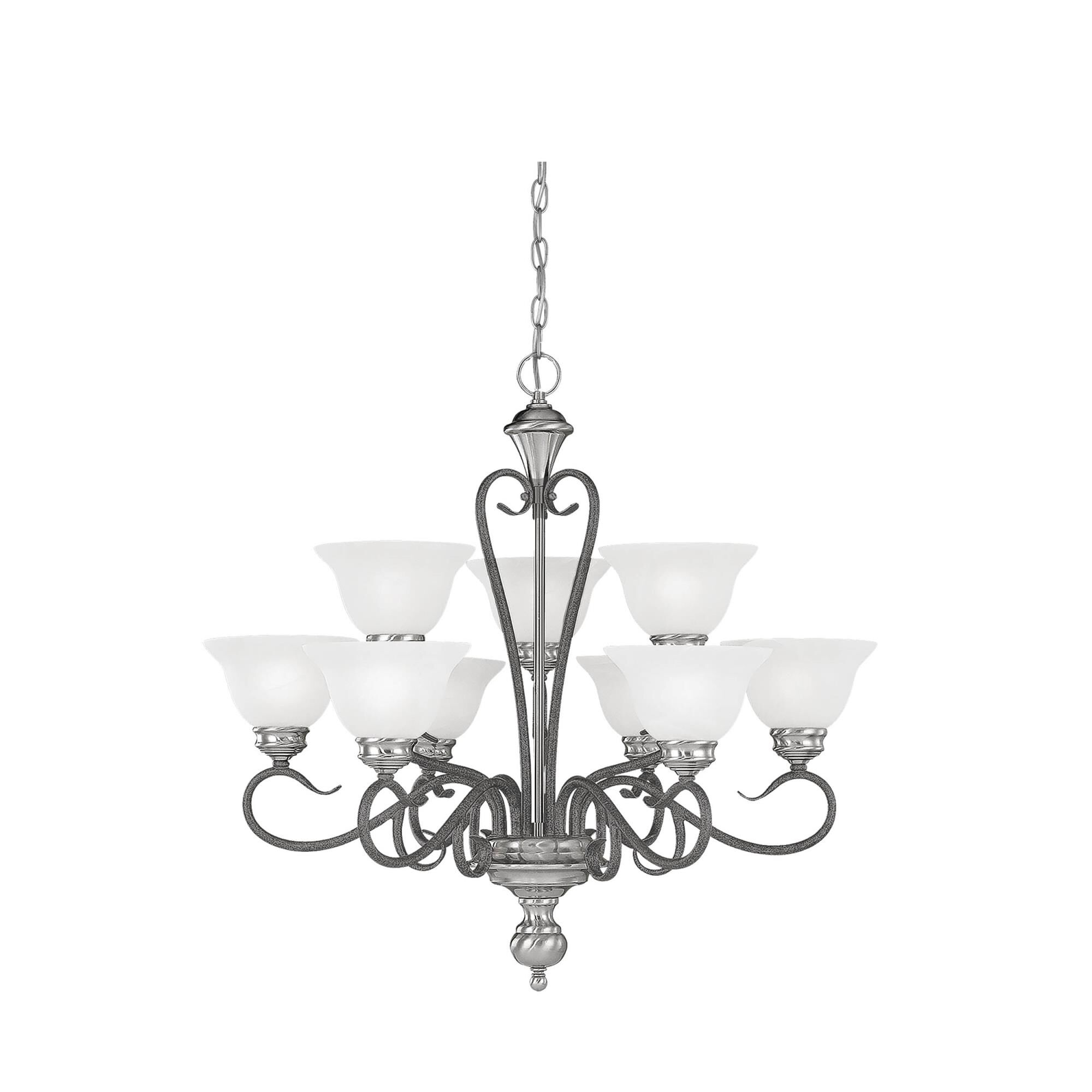 Millennium Lighting 679 Devonshire 9 Light Two Tier Chandelier, Satin Nickel / Silvermist