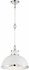 Industrial meets fashion with the Corning Collection. With an adjustable height from 11" to 41" and measuring 16" wide, this stylish one-light pendant has a fresh look with its White finish with Polished Nickel accents. It provides ample illumination from one 60-watt Edison-base bulb.