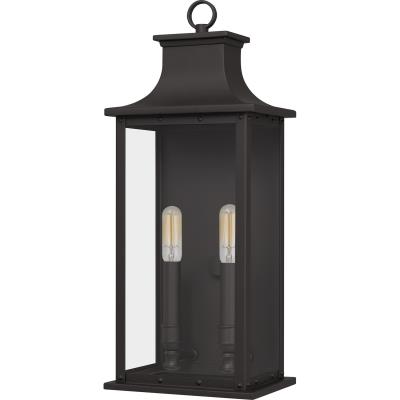 Quoizel ABY8408OZ Abernathy Traditional Clear Glass Medium Outdoor Wall Lantern, 2-Light 120 Total Watts, 2" H x 8" W, Old Bronze