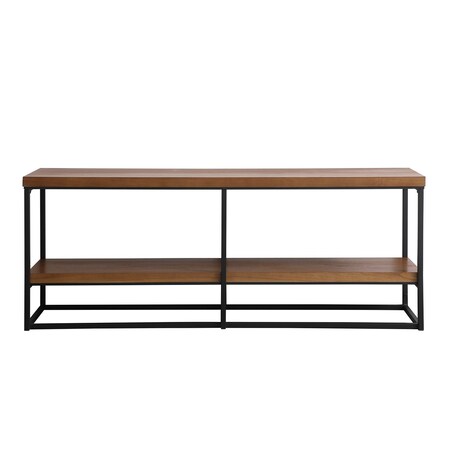 - Finish Walnut; industrial entertainment unit with two open shelves; holds up to 66 lbs; sturdy flat surface; Hand Painted - Yes; Distressed Finish - No; Hardware Finish - Black; Hardware Material - Metal; Fixture Material - MDF and Metal; Shape - Rectangle