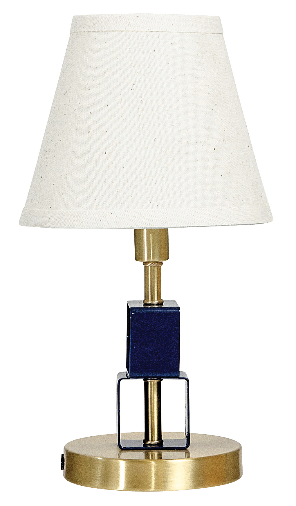 House of Troy-B208-SB/NB-Collection: Bryson, Finish Color: Satin Brass/Navy Blue, Height: 12.75", Depth: 6", Lamping Type: Incandescent, Number Of Bulbs: 1, Wattage: 40 Watts, Dimmable: No, Moisture Rating: Dry Rated, Desc: Bryson Mini black tapered marble column satin brass accent lamp Base Dimension : 5 / Shade Included: Yes / Shade Dimensions: 4 x 6 x 6. ,-Bryson - 1 Light Table Lamp-12.75 Inches Tall-Satin Brass/Navy Blue Finish