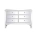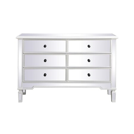Make a striking statement with this gleaming mirrored six drawers cabinet and live in the elegantly sleek future. Its contemporary style is defined by the alternating panels of polished beveled mirror panels. Its alternating panels that wrap around the entire cabinet creates an amusing design that everyone will enjoy and marvel at. Place this storage cabinet in your home and adorn it with your favorite objects?captivating art pieces, beautiful floral arrangements, or even personal treasures like family portraits. Ships fully assembled with the exception of installing the legs.