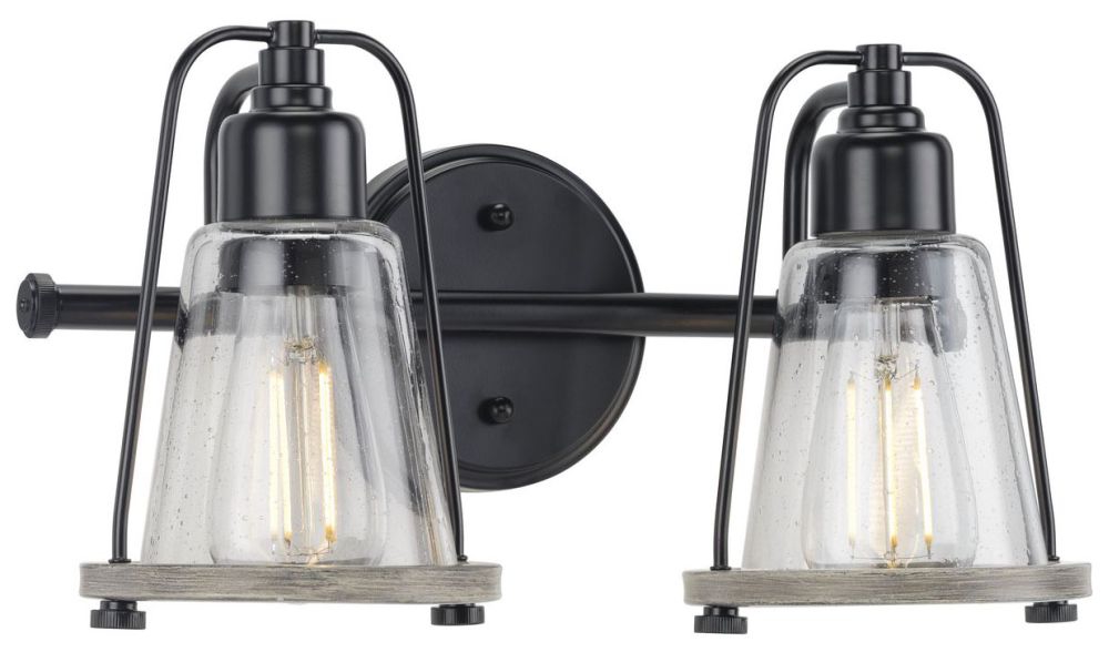 - COASTAL BATH VANITY LIGHT: Create a relaxing seaside haven with the Conway Collection 2-Light Matte Black Clear Seeded Farmhouse Bath Vanity Light ideal for any entryway, hallway, foyer, bedroom, sitting room, living room, or bathroom in farmhouse and coastal style settings.