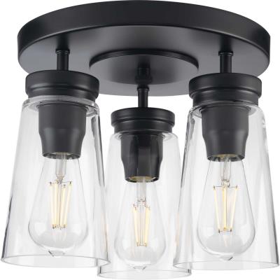 Progress Lighting Stockbrace Collection 3-Light Matte Black Clear Glass Farmhouse Flush Mount Ceiling Light