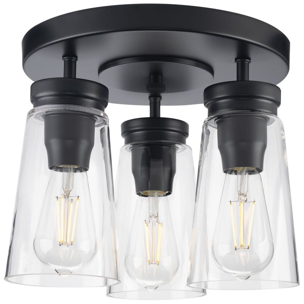 - FARMHOUSE FLUSH MOUNT LIGHT: Inspired by traditional post-and-beam construction, the Stockbrace Collection 3-Light Matte Black Clear Glass Farmhouse Flush Mount Ceiling Light is ideal for any hallway, stairwell, entryway, kitchen, or sitting room in modern farmhouse style settings.