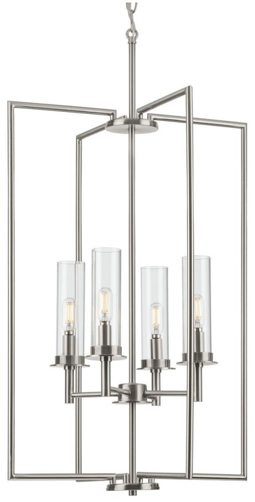 - TRANSITIONAL PENDANT LIGHT: Balance the best of modern and traditional with the Kellwyn Collection 4-Light Brushed Nickel Clear Glass Transitional Foyer Pendant Light ideal for any foyer, dining room, stairway, or entryway in contemporary, traditional, and transitional style settings.