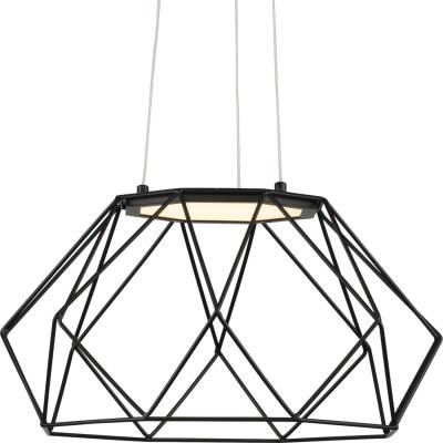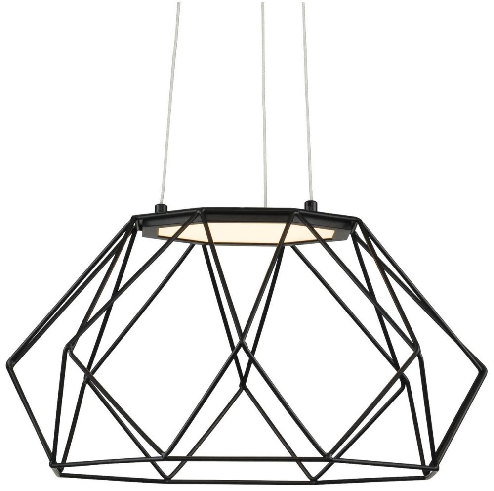 - MATTE BLACK FINISH: The open diamond-patterned frame is coated in a classic matte black finish and is suspended from cables attached to a round ceiling plate.