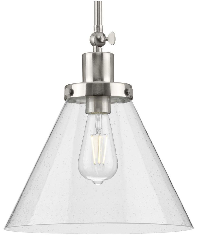 - INDUSTRIAL LIGHTING DESIGN: Enjoy focused task lighting with the Hinton Collection 1-Light Seeded Glass Brushed Nickel Industrial Pendant Light ideal for any foyer, dining room, kitchen, breakfast nook, entryway, living room, or bedroom in coastal, farmhouse, transitional, or vintage electric style settings.