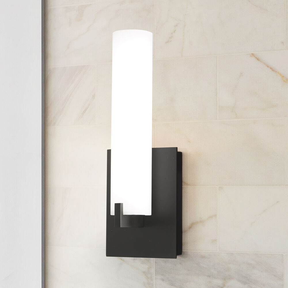 From the George Kovacs Saber collection comes this contemporary wall sconce. The sleek and stylish light features a coal finish. An etched opal glass tube tops the striking sconce for an updated look. The modern style adds appeal to this stunning fixture.