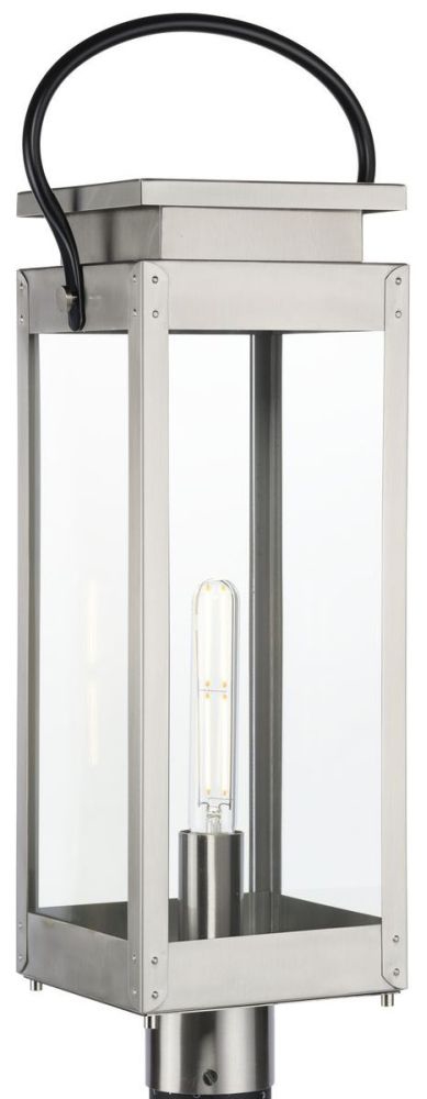 Union Square Collection 1-Light Stainless Steel Clear Glass Transitional Outdoor Post Lantern Light