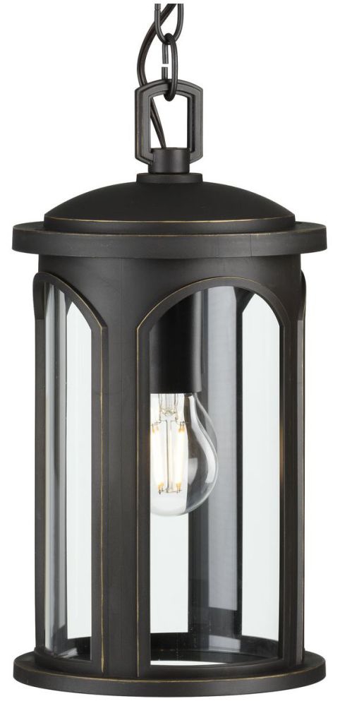 Gables Collection 1-Light Antique Bronze Clear Glass Transitional Outdoor Hanging Lantern Light