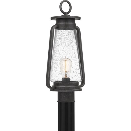 Quoizel SUT9009SPB Sutton Transitional Clear Seedy Glass Large Outdoor Post Lantern, 1-Light 100 Watt, 19" H x 9" W, Speckled Black