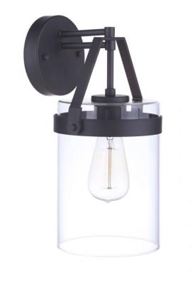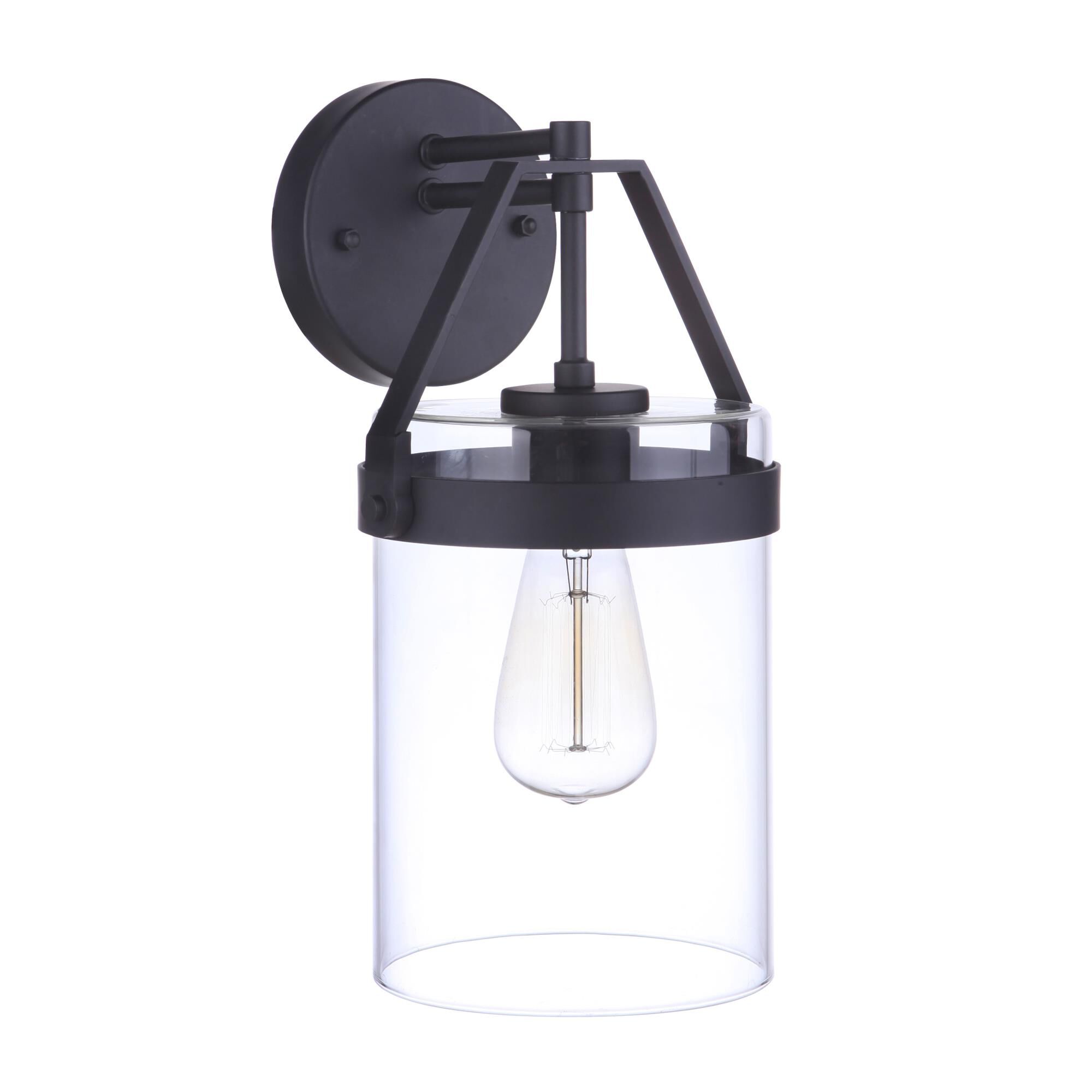Craftmade ZA3324-MN Franklin Clear Glass Cylinder Outdoor Wall Sconce, 1-Light 60 Watt, 14"H x 8"W, Midnight