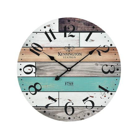 - The Herrera wall clock is an eye-catching, rustic accent. Its face is given a variety of soft, aged wood finishes in pastel tones. Ideal for displaying in a relaxed kitchen-diner area to complement a laidback, social aesthetic.