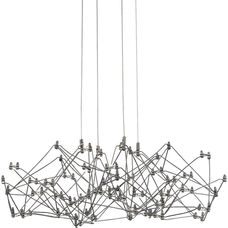 Eurofase Lighting-38038-029-Collection: Leonardelli, Material: Metal, Width/Diameter: 27", Height: 7.5", Lamp: 80-0.5w bulb(s), - Desc: the end of fine rods which give this light, airy chandelier the appearance of floating effortlessly above. 1 Year Fixture/5 Years LED / 4000 / 2400 / 80 / 35000 Hours / Assembly Required: Yes / Canopy Included: Yes / Canopy Diameter: 1.5 x 9 / Dimable: Yes .-Leonardelli - 40W 80 LED Small Chandelier in Contemporary Style - 27 Inches Wide by 7.5 Inches High Dark Chrome