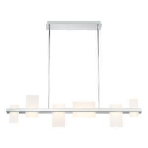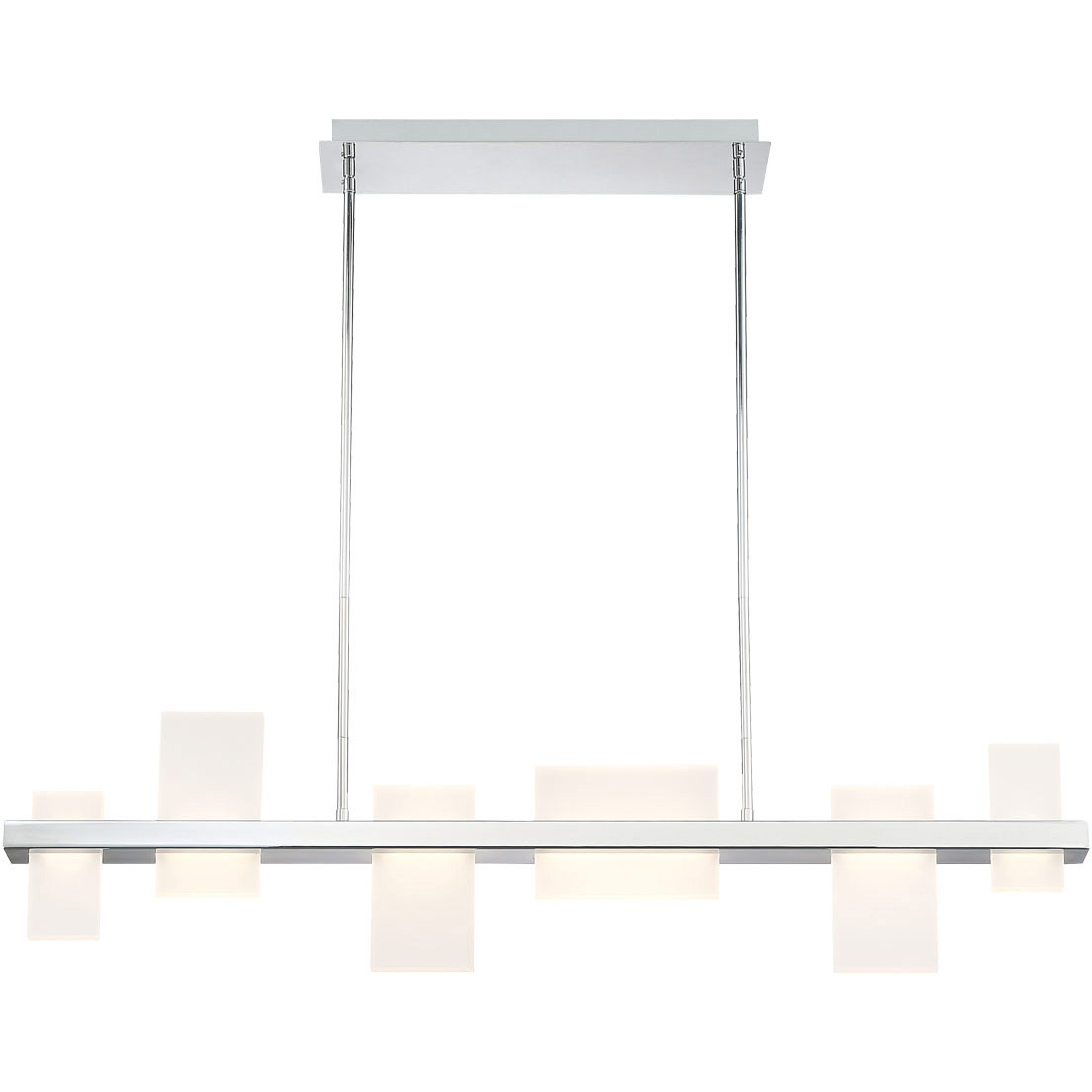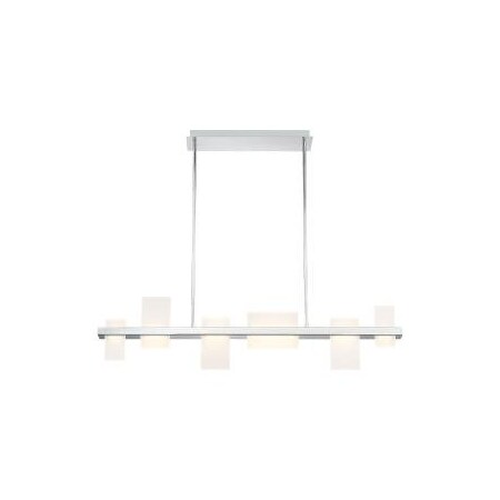 Eurofase Lighting-39338-013-Collection: Pannello, Material: Steel, Finish Color: Chrome, Width: 2.5", Height: 10.75", Length: 43.5", Chain Length: 57", Lamping Type: LED, Wattage: 65 Watts, Dimmable: No, Moisture Rating: Dry Rated, Desc: Six Blocks Of Frosted Acrylic Line A Linear Frame In A Stimulating Way. With Varied Sizes, The Design Is Playfully Structured With Its Geometric Form. Frosted Acrylic / Linear Design / Led / Geometric / Chrome Finish. / Warranty: 12 Months / Color Temperature: 3000 / Lumens: 2700 / Cri: 90 / Rated Lifetime Hours: 35000 / No. Of Rods: 5 / Assembly Required: Yes / Canopy Included: Yes / Shade Included: Yes / Canopy Diameter: 18.75 X 5.25 X 1.25 / Rod Length(S): 18 / Dimable: Yes . ,-Pannello - 43.5 Inch 65W Led Chandelier